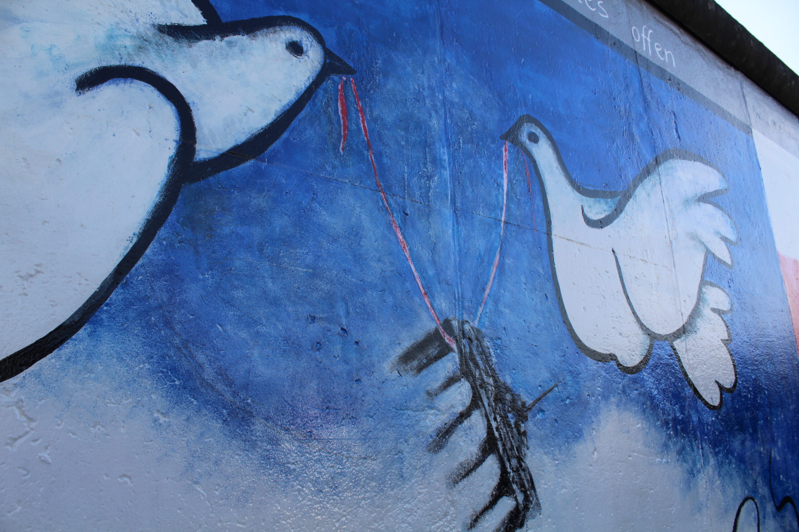 After a short nap we gathered ourselves again and headed out to see the East Side Gallery. This gallery is a 1.3 km long stretch of the Berlin Wall. One side is painted with beautiful murals and the other side is open to the public for their own art.
