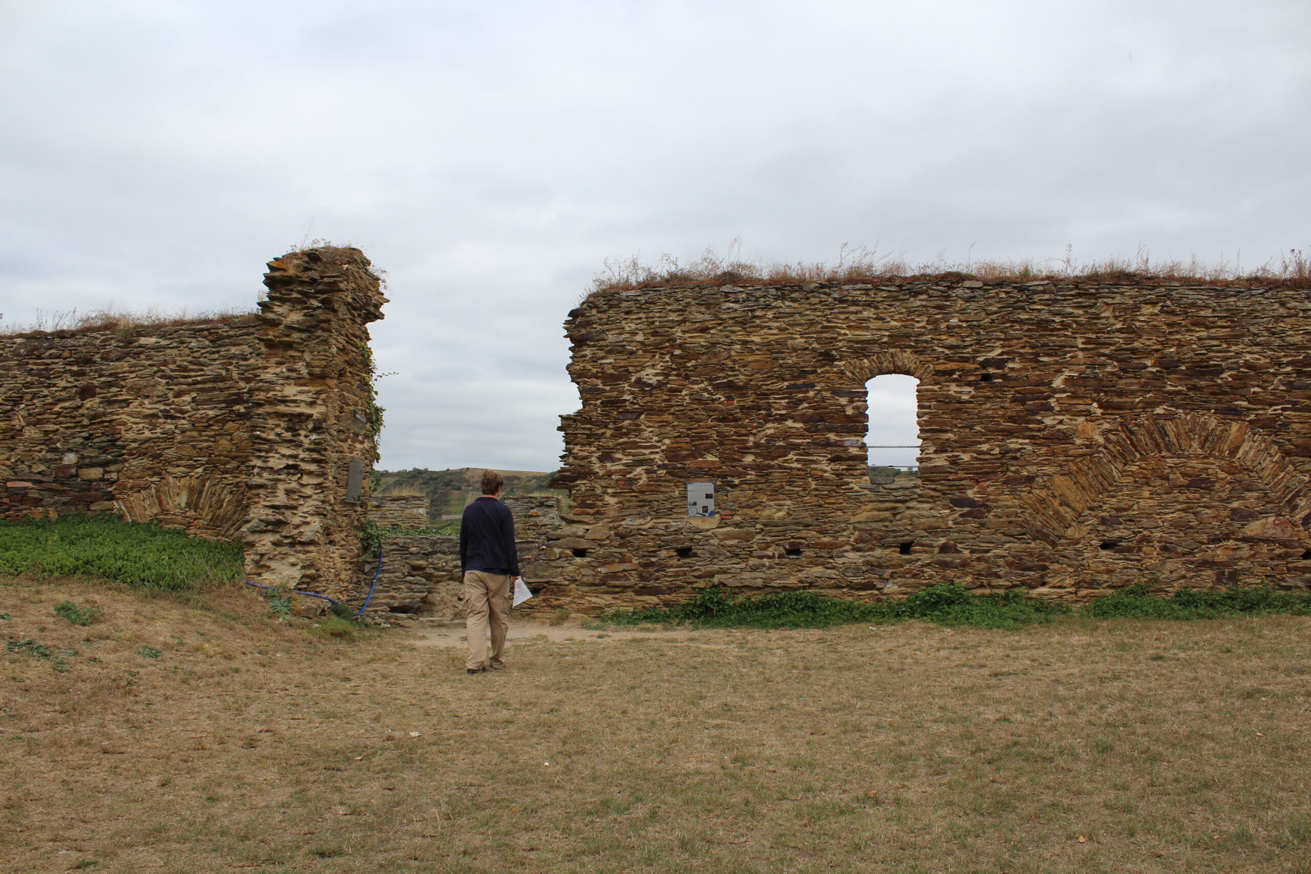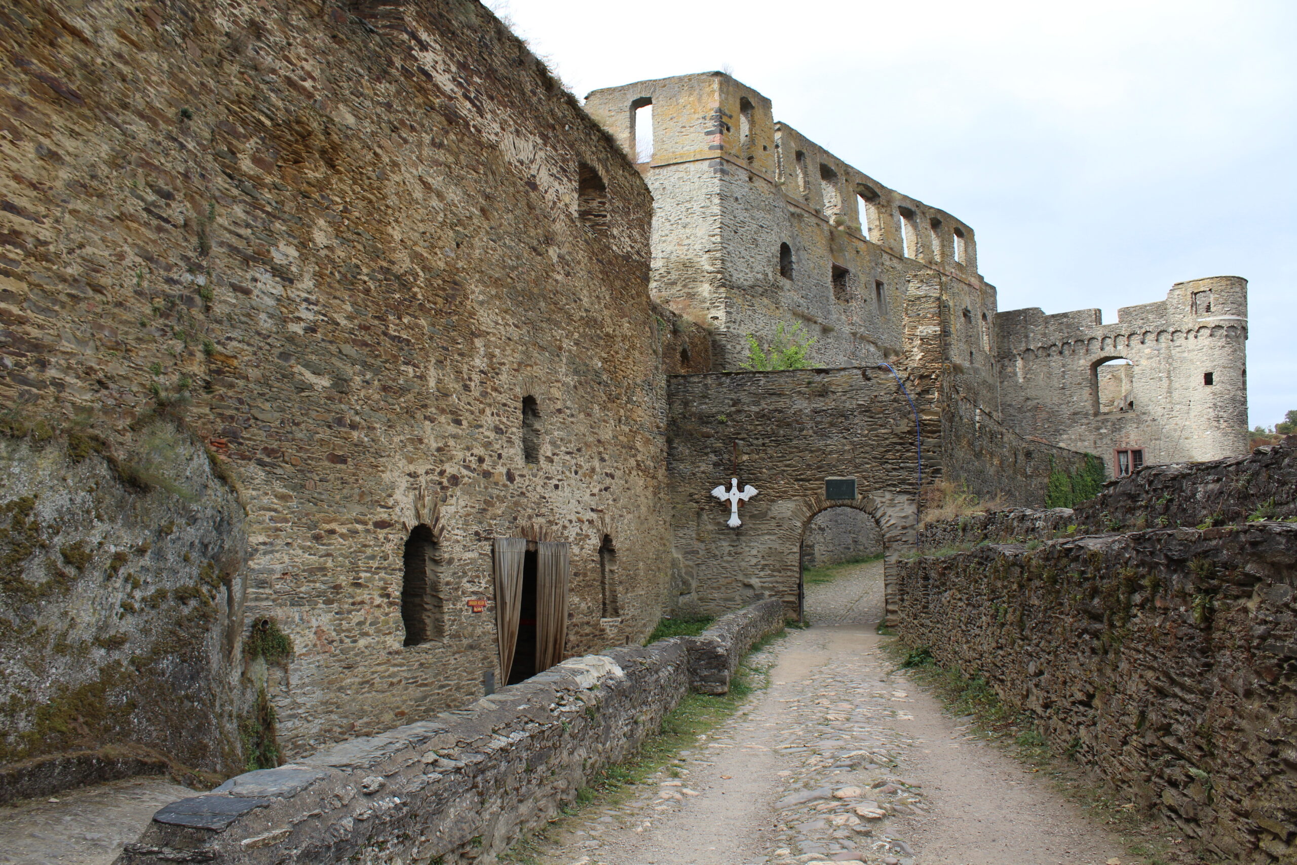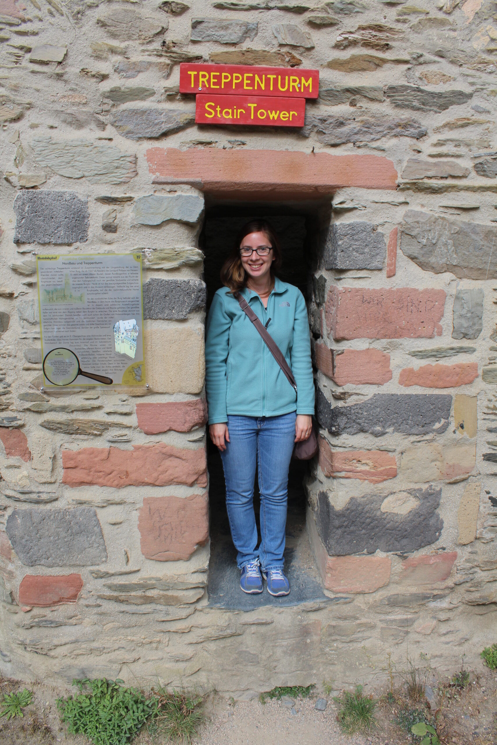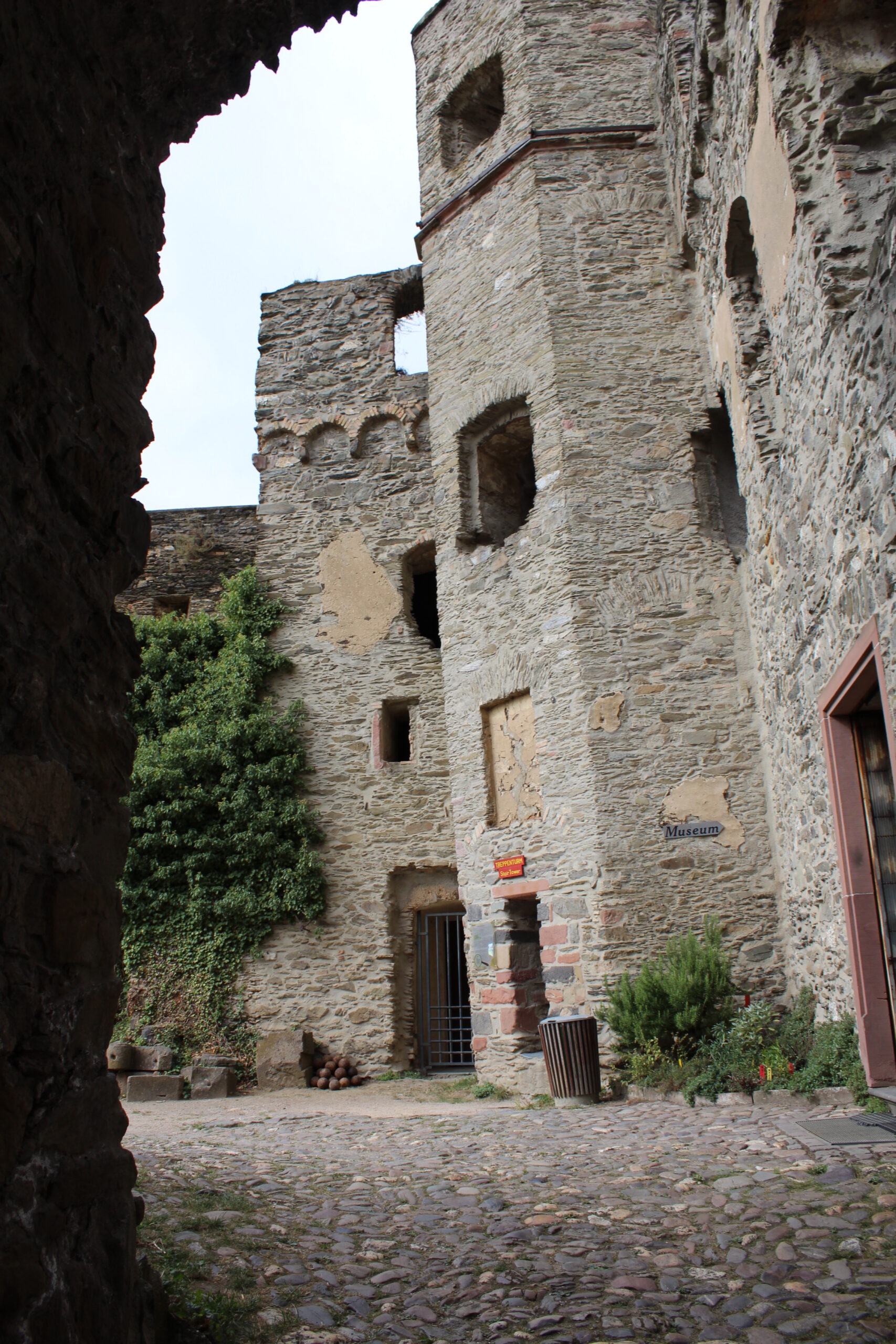 After a short time we arrived at the Rheinfels Castle. Only a few dollars to park and only $5 per person to enter the castle and wander as you wish. It was amazing. Though the castle is mostly in ruins you can wander in and out of little rooms and hallways. You can climb up their little stoney staircases. At one point we ended up in the “big mine tunnel.” This was a narrow and short (although I could stand up) completely dark tunnel that went straight up a hill. I told Jacob I thought this was a bit creepy and that there were castle ghosts that were going to get us. He seemed to love it!
