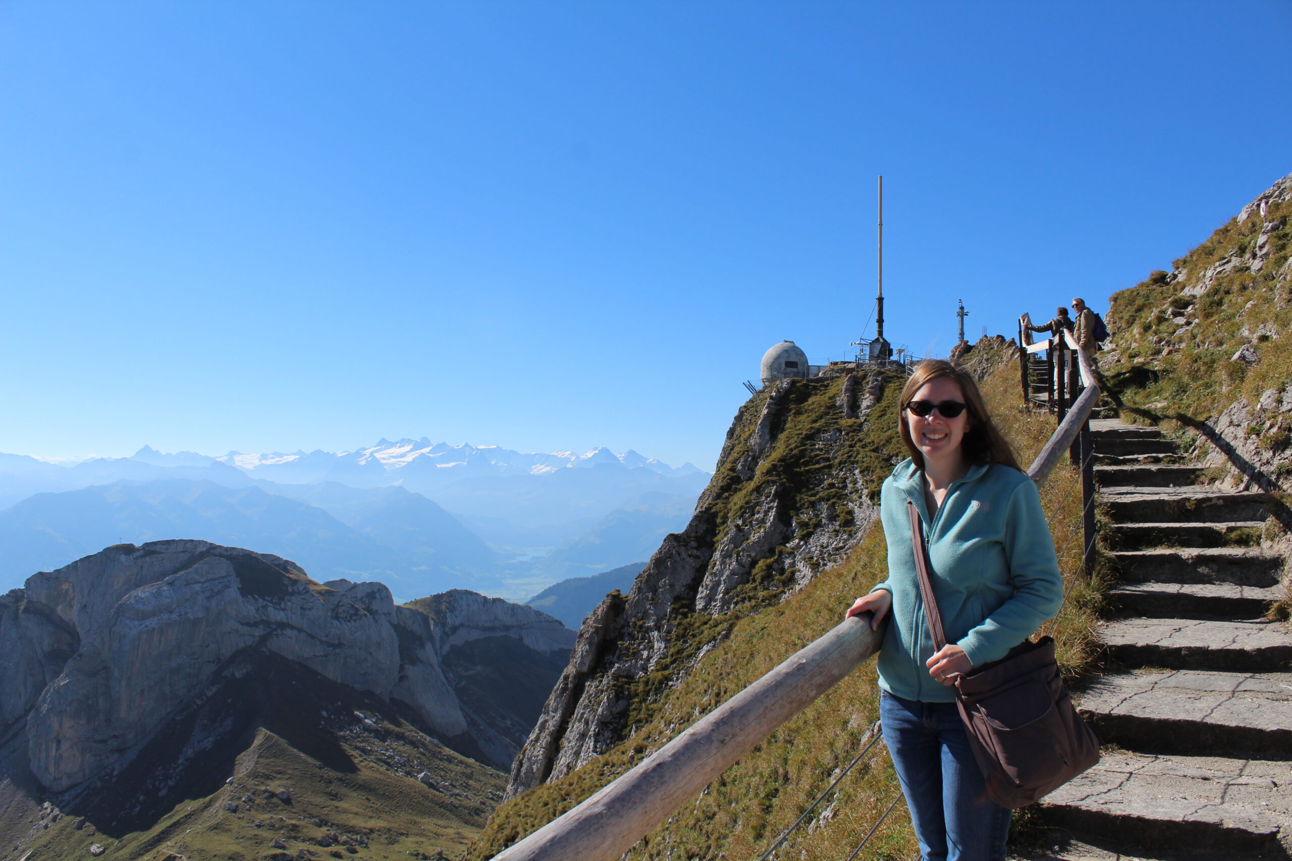 While at the top of Tomlishorn we ran into some friendly Americans visiting from Chicago. We chatted with them for a bit and they shared some suggestions about places to see in Zermatt where we are headed next. It was wonderful getting to chat with them for a bit and share our experiences. They were kind enough to take the photo below.