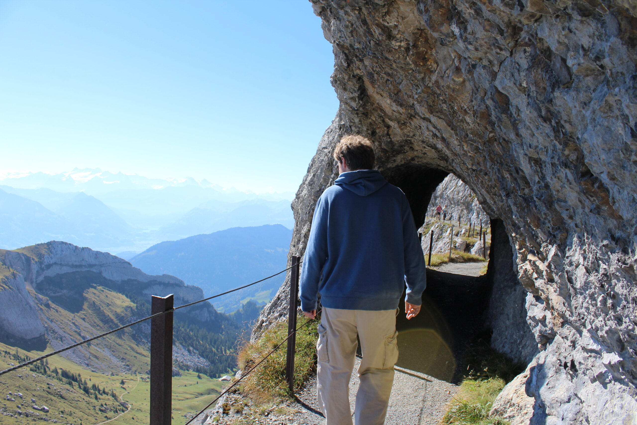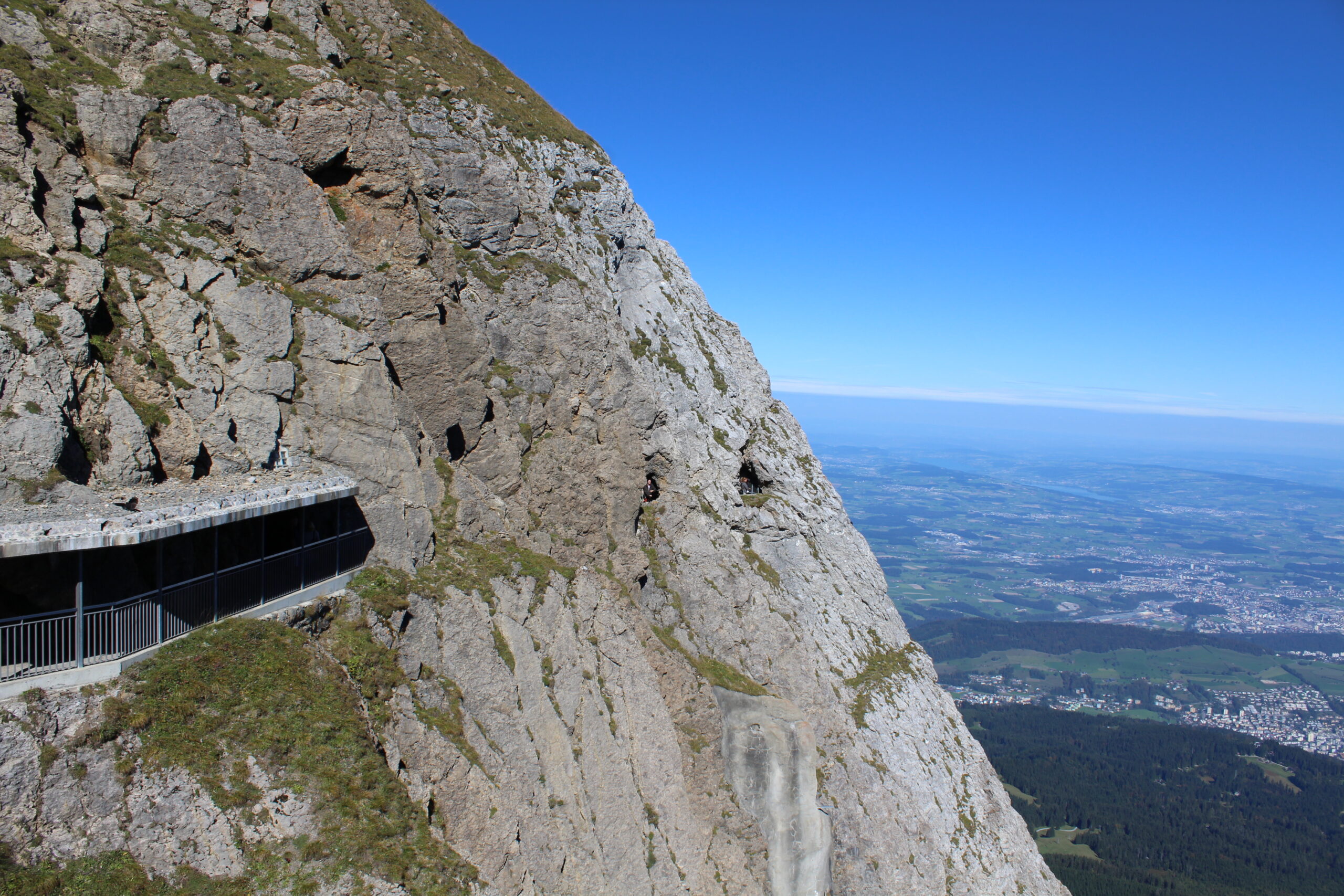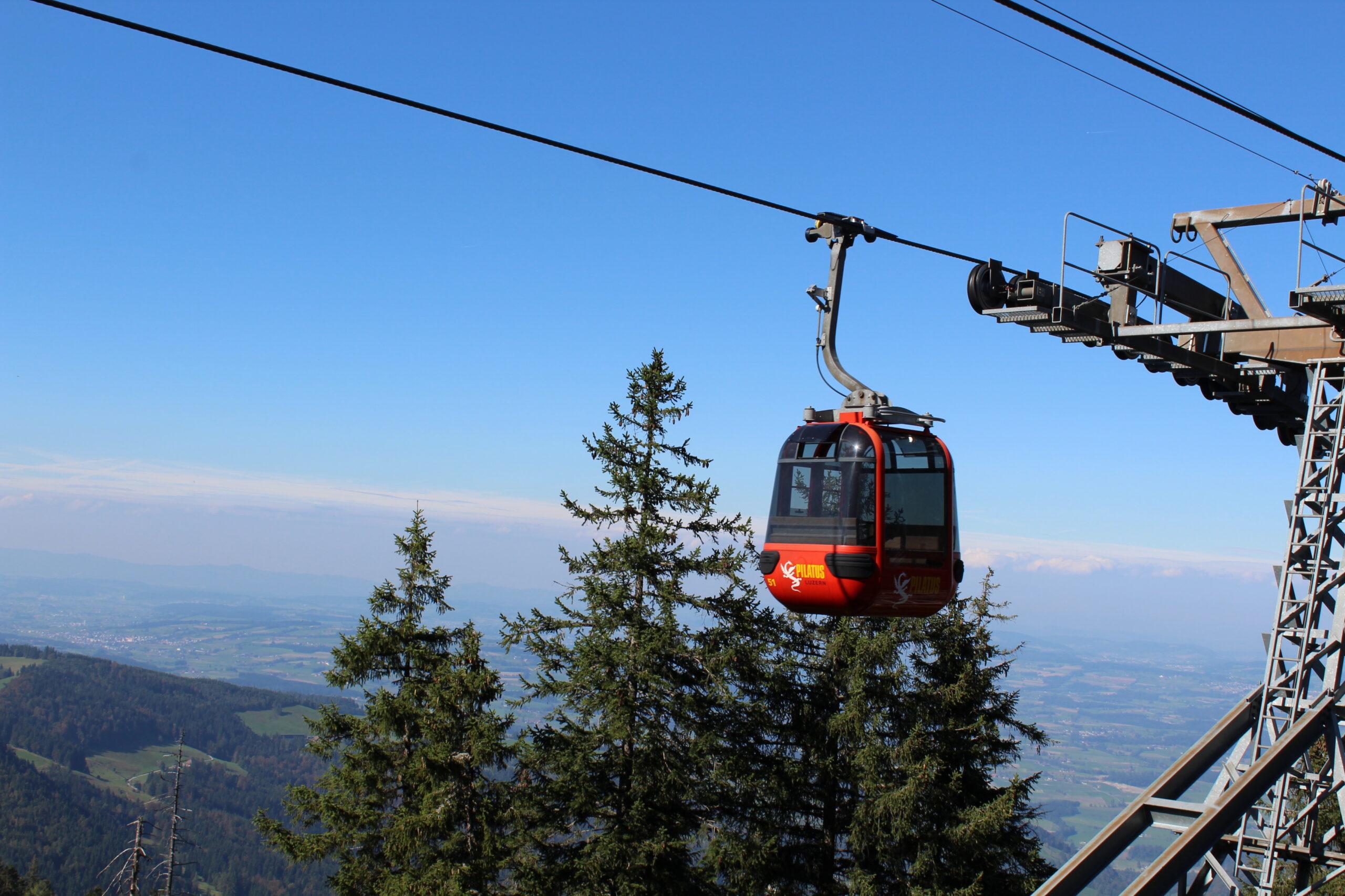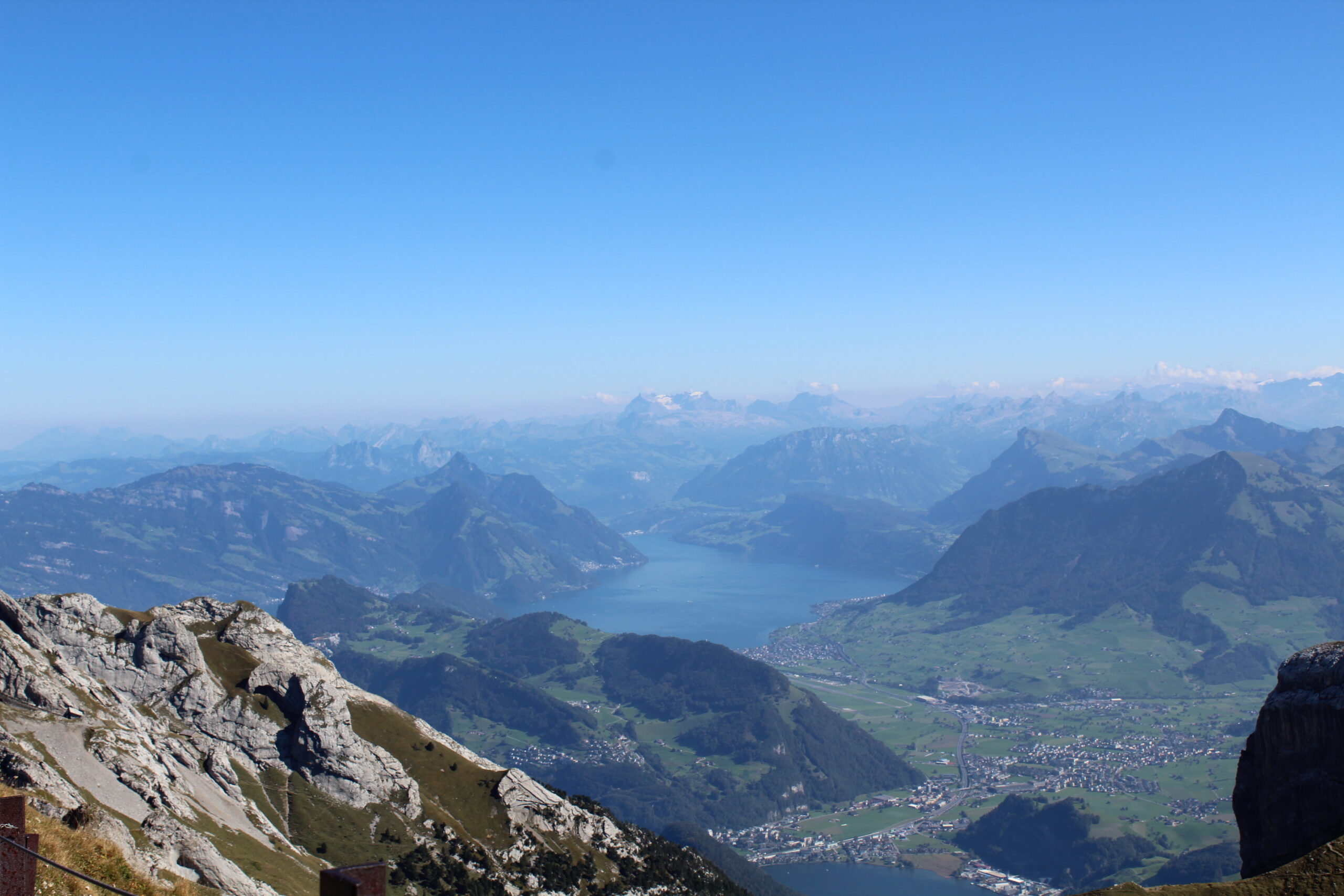 After chatting with some nice people at tourist information we purchased all the tickets we would need to navigate to Mount Pilatus. This would involve getting on a train from Lucerne to Alpnachstad. From there you get off the train, show your ticket to some friendly people and they give you another ticket to board the super steep train that goes straight up the mountain at a terrifying angle. Jacob tells me this is the steepest train in the world. The steepest angle is 48 percent. We were in the car with a German family and two men traveling from India. The father of the German family was so kind to swap seats with me so that I could take pictures out of the window, which was a bit terrifying but also awesome.