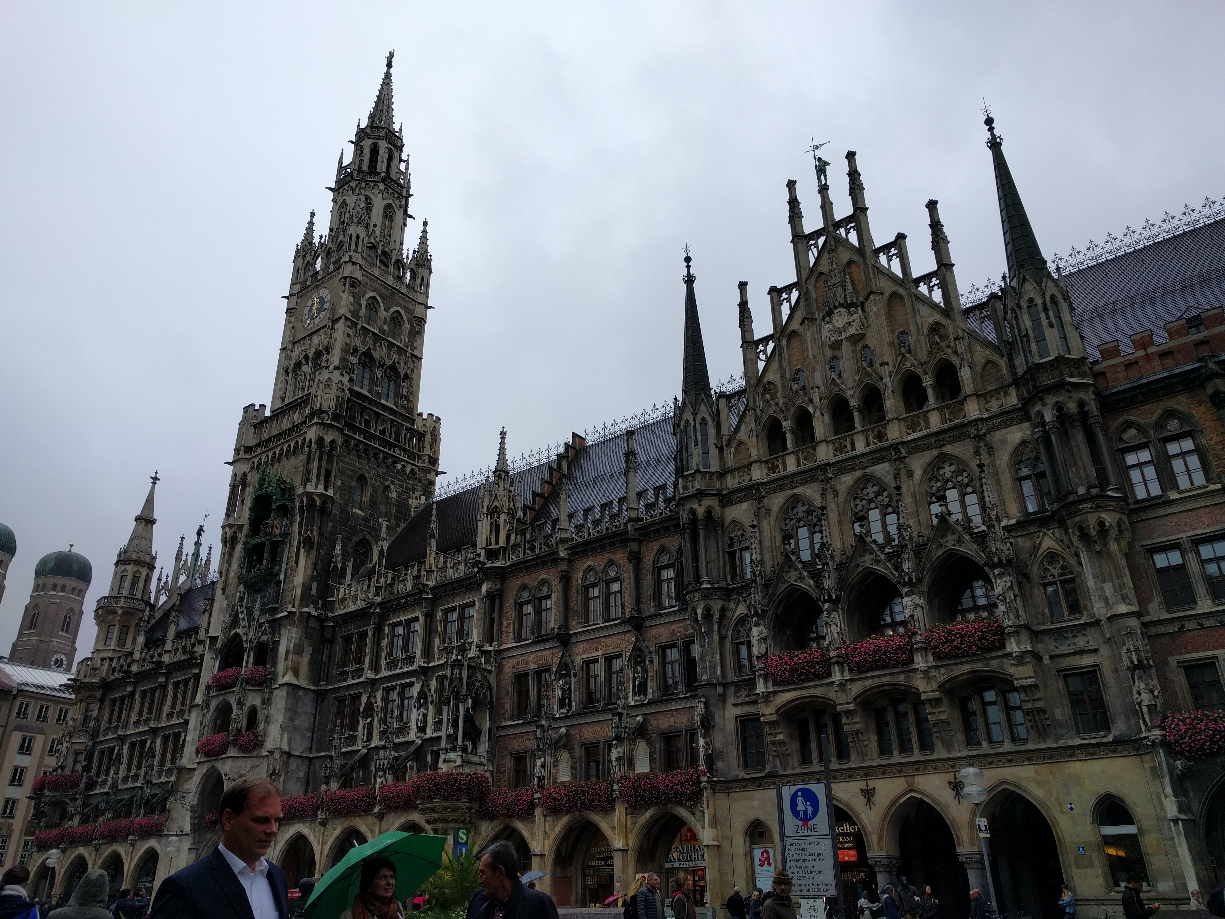 After breakfast we were out the door to go check out the sights of Munich that we missed when we were here almost three weeks ago. We bought a three-day subway pass and got on the train. After two short stops we were in Marienplatz which is basically the Munich city center. Right next to the station is the Neues Rathaus.