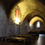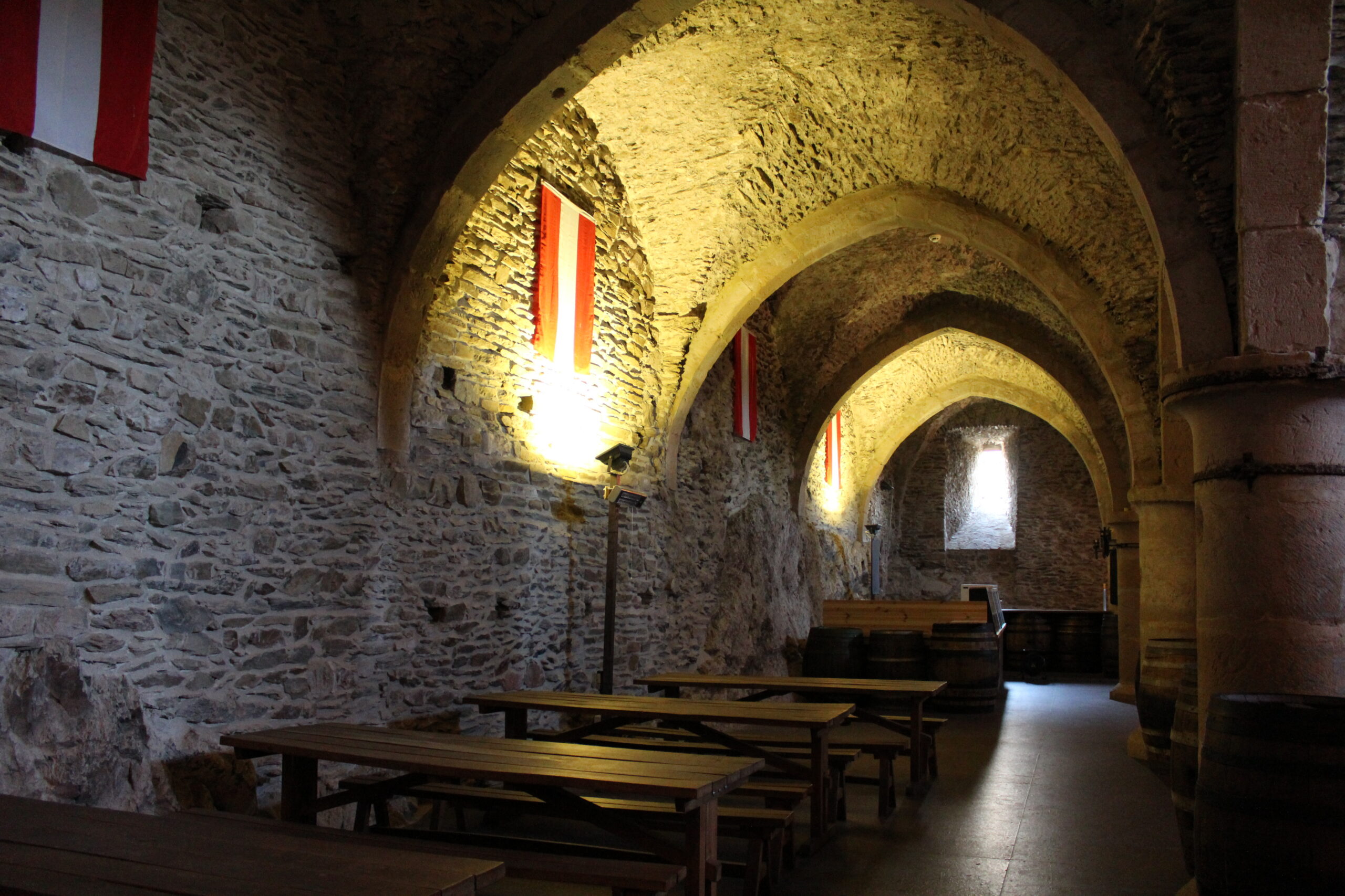 Once at the top – we made the short trek over to the castle, paid our admission and were through the door! We love doing self-guided tours. We were given a map that guided us to each section of the castle. This castle has been fully restored so you can see what life would have been like here in the 1700s and they have a section inside that shows the original castle wall and the different layers in the stone that date back to the 10th century. We compared this castle to the Rheinfels Castle we visited last time we were traveling in Europe. That castle was a basic shell and not fully restored like the Vianden Castle. Photos below…