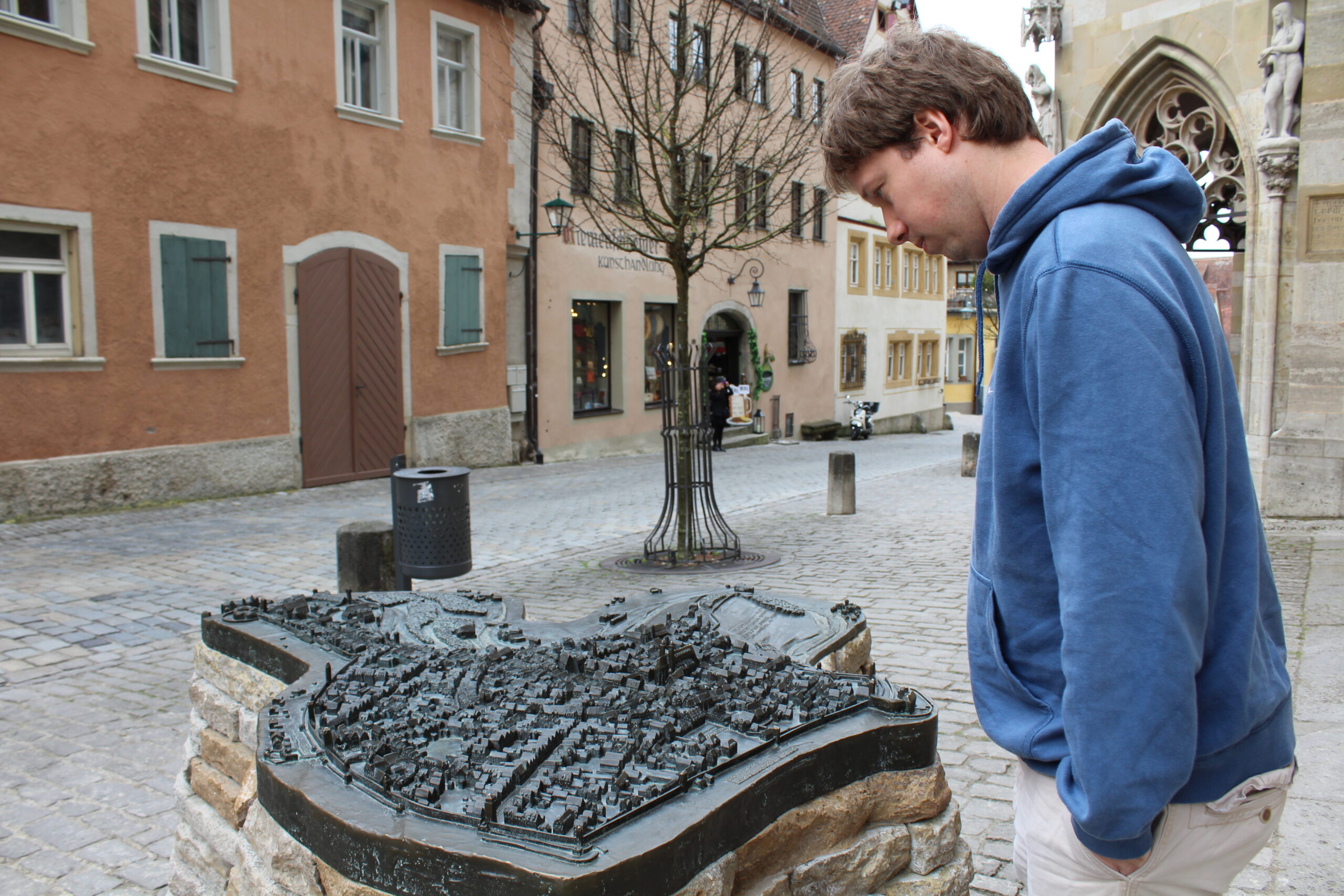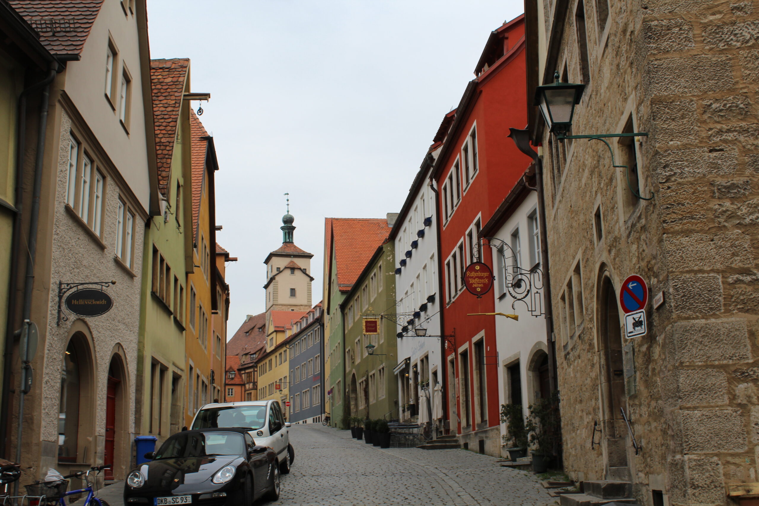 Our first stop on our tour-de-Germany today was Rothenburg ob der Tauber. This place is well known for its well-preserved medieval old town and the old town wall you can walk on. When we arrived, a man wearing a Canada hat approached me and started speaking to me in German. He seemed very friendly so I said, “English?” Then he said, “Parking ticket?” He then offered us his paid parking ticket that still had two hours left on it. I was surprised and thanked him for the ticket. This meant free parking for us, thank you kindly!