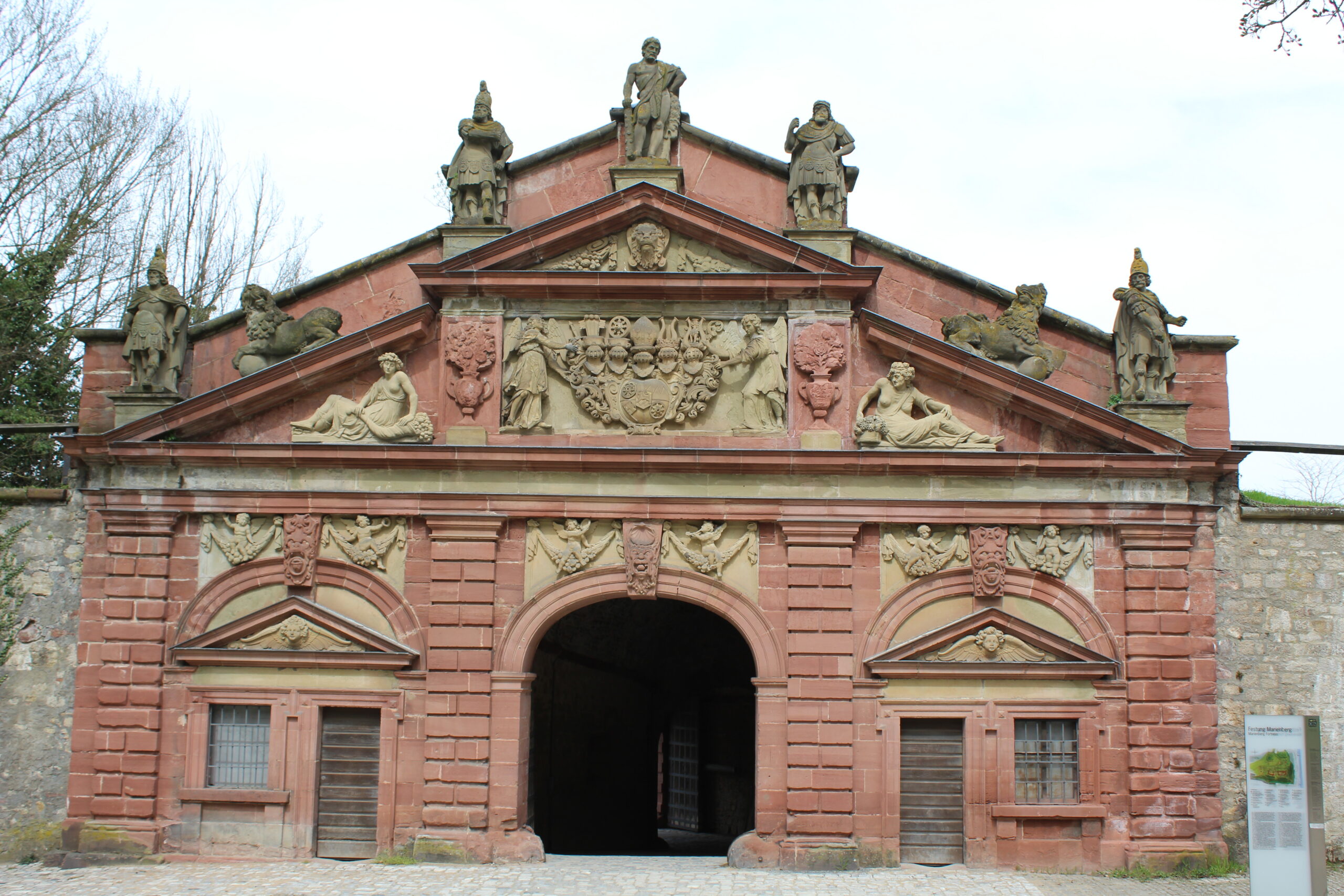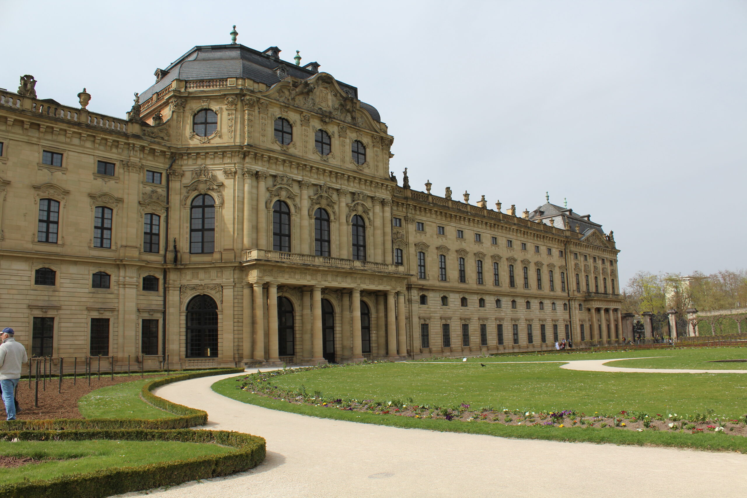 From Rothenburg we were on our way to Wurzburg. It was about a 45 minute drive. When we got to Wurzburg we were looking for easy parking. Thankfully, here when you drive into cities they often have signs that list the various parking garages and how many spaces they have free and where they are. We followed a line of cars to a garage that said it had 200 open spots. Well, we found out why that garage had so many spots open – you couldn’t get to it! The roads were closed off. So, we followed the line of cars and we all took turns doing u-turns on the tiny cobblestone roads. From there Jacob was able to find parking right in front of the Residence.