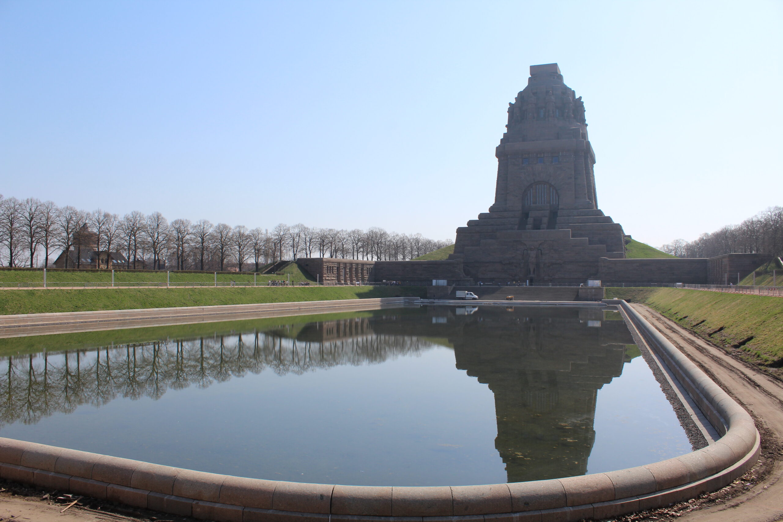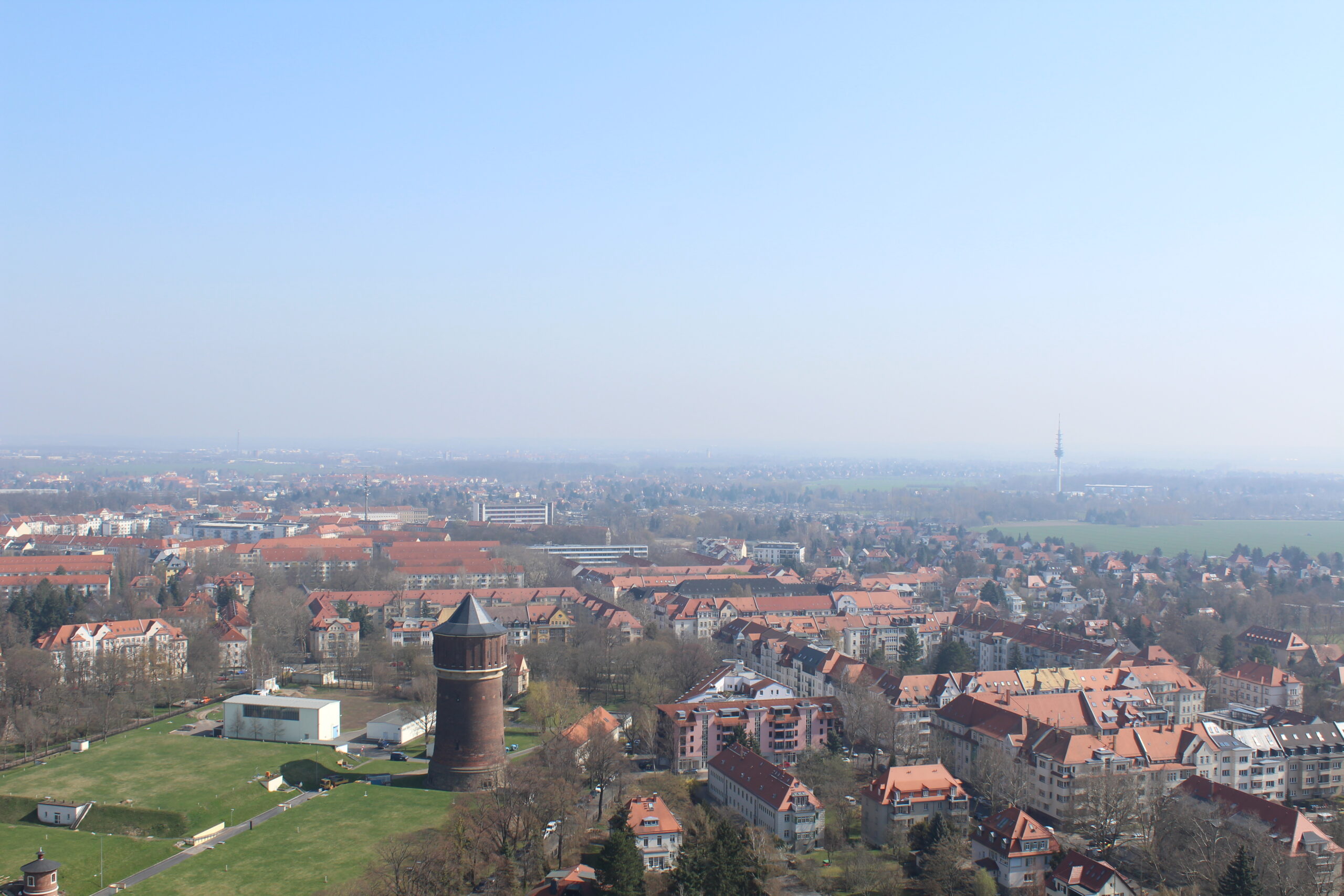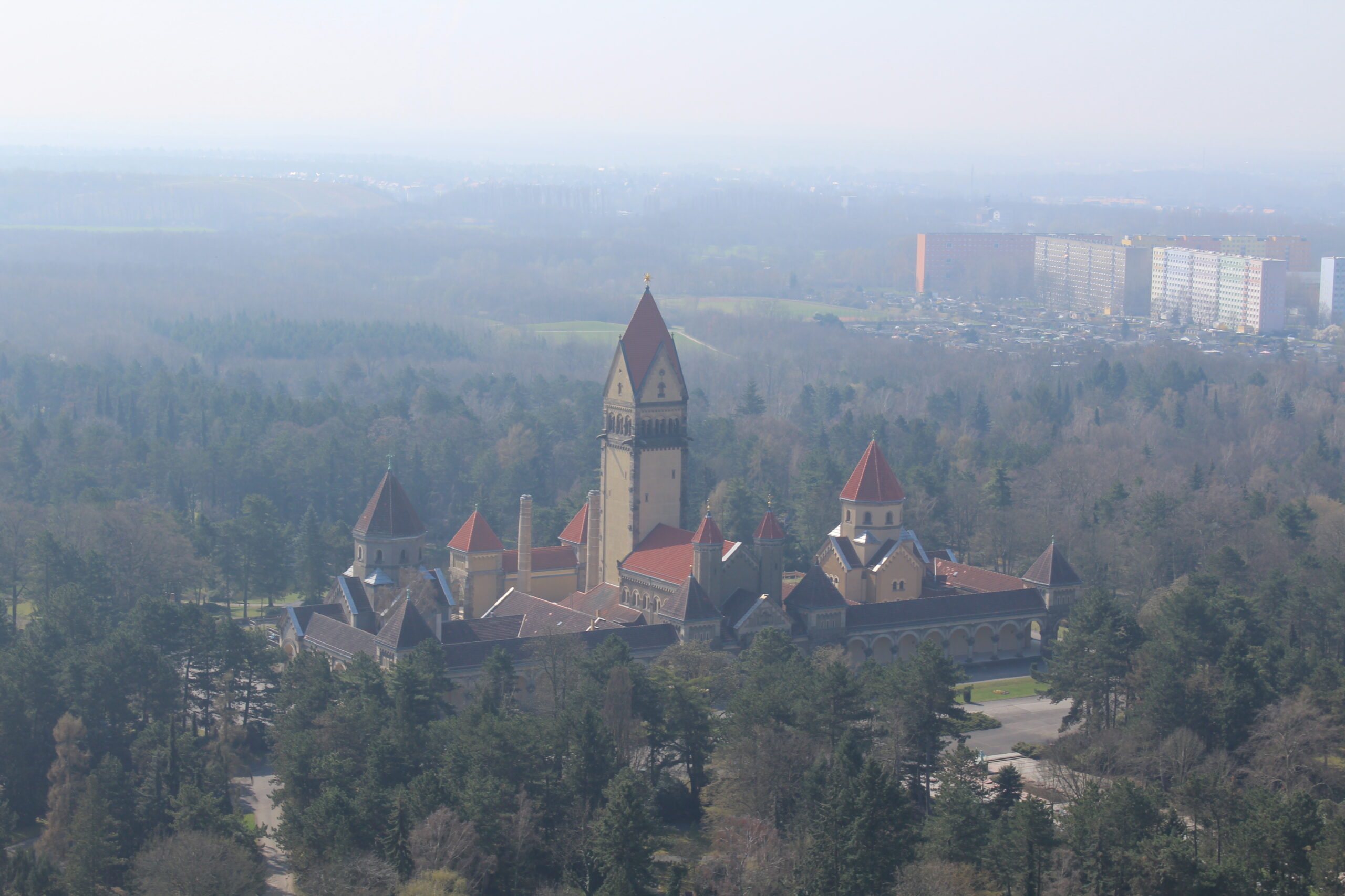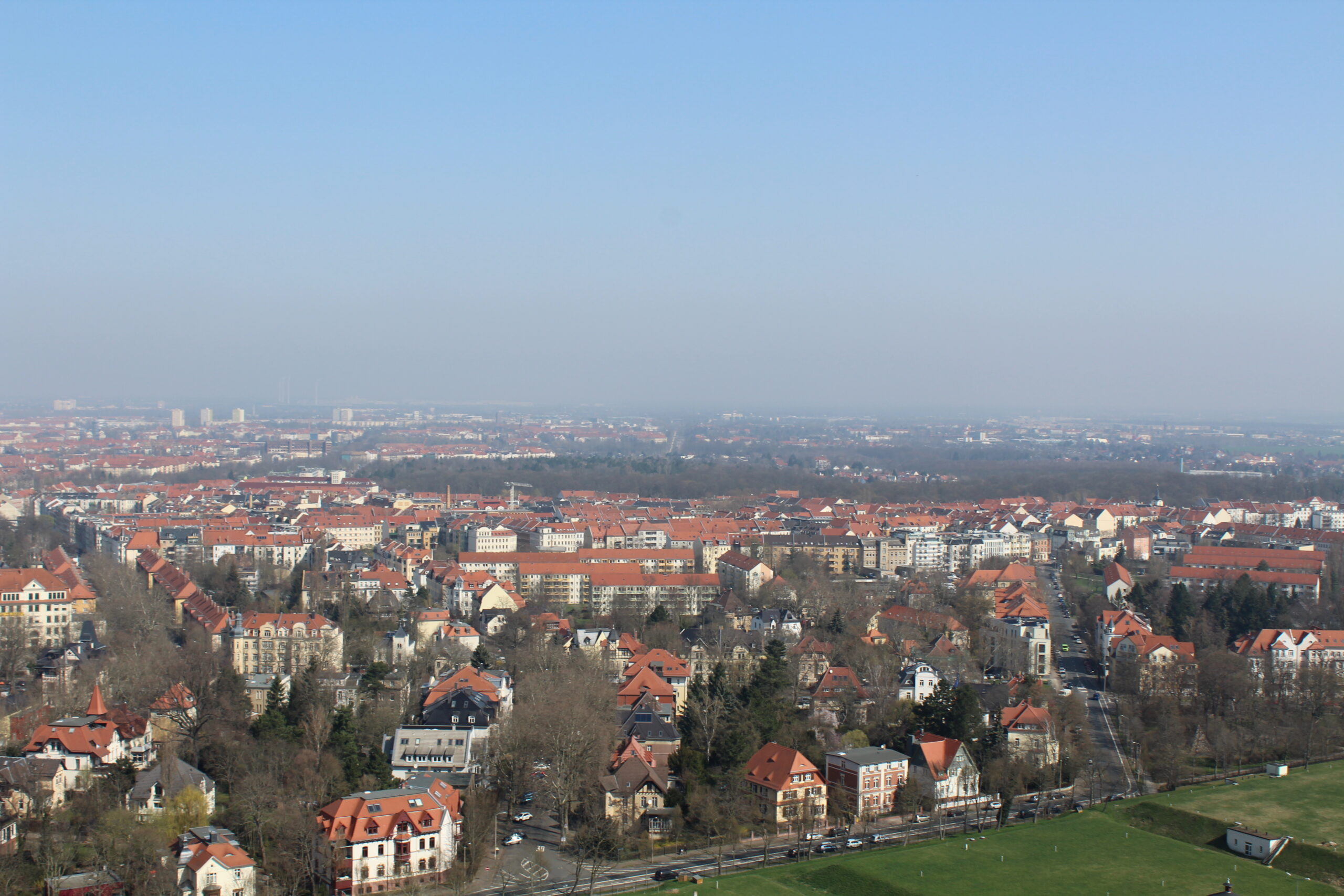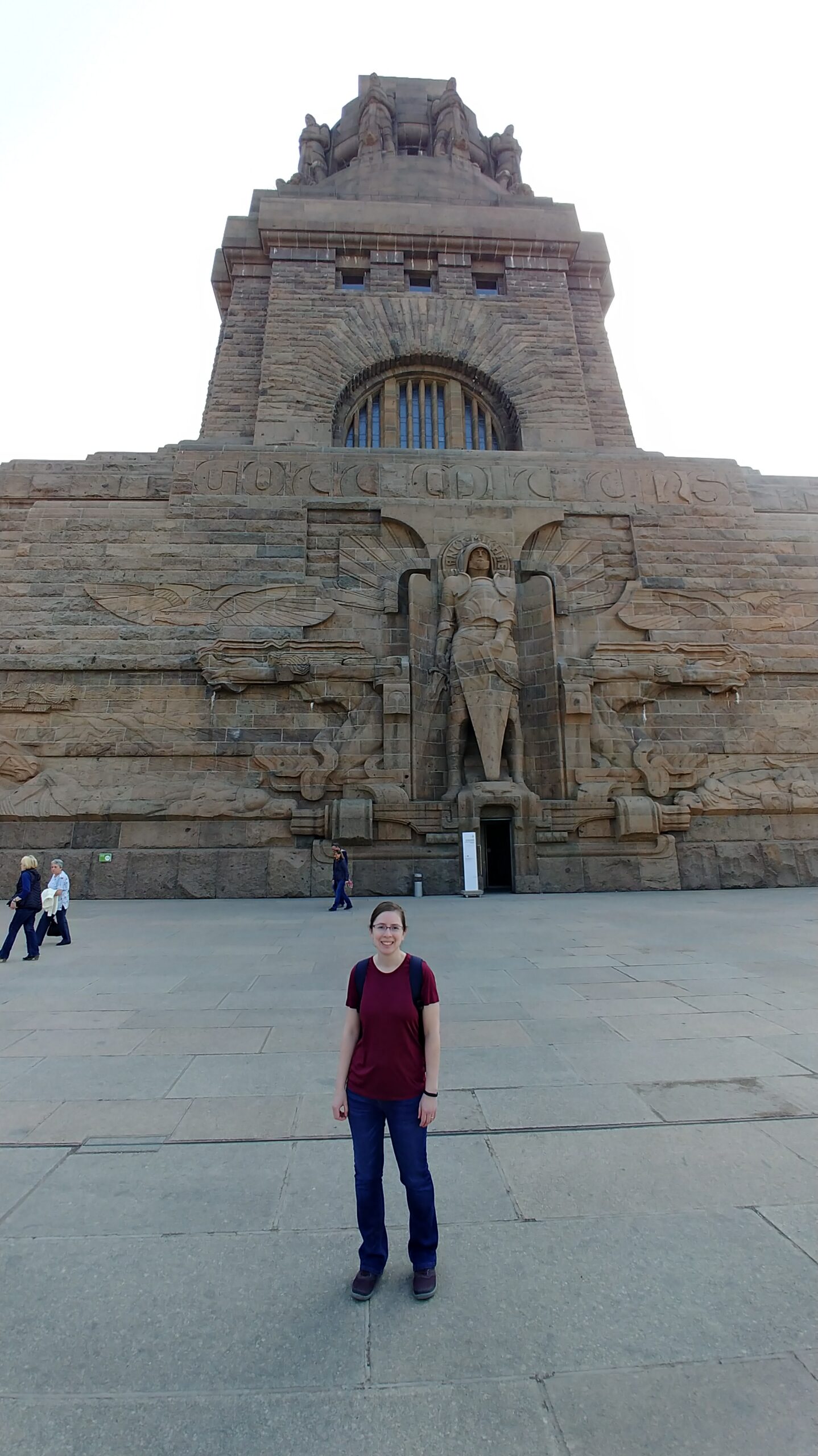 After taking in the old town, we got in the car and headed over to see the Völkerschlachtdenkmal or the Monument to the Battle of the Nations. This monument was built in 1913 to commemorate the Battle of Leipzig also known as the Battle of the Nations. The monument commemorates Napoleon’s defeat at Leipzig and it is huge! The monument is 300 feet high and you can walk the 500 steps up to the very top. We took photos from the top but it was a bit hazy in Leipzig.