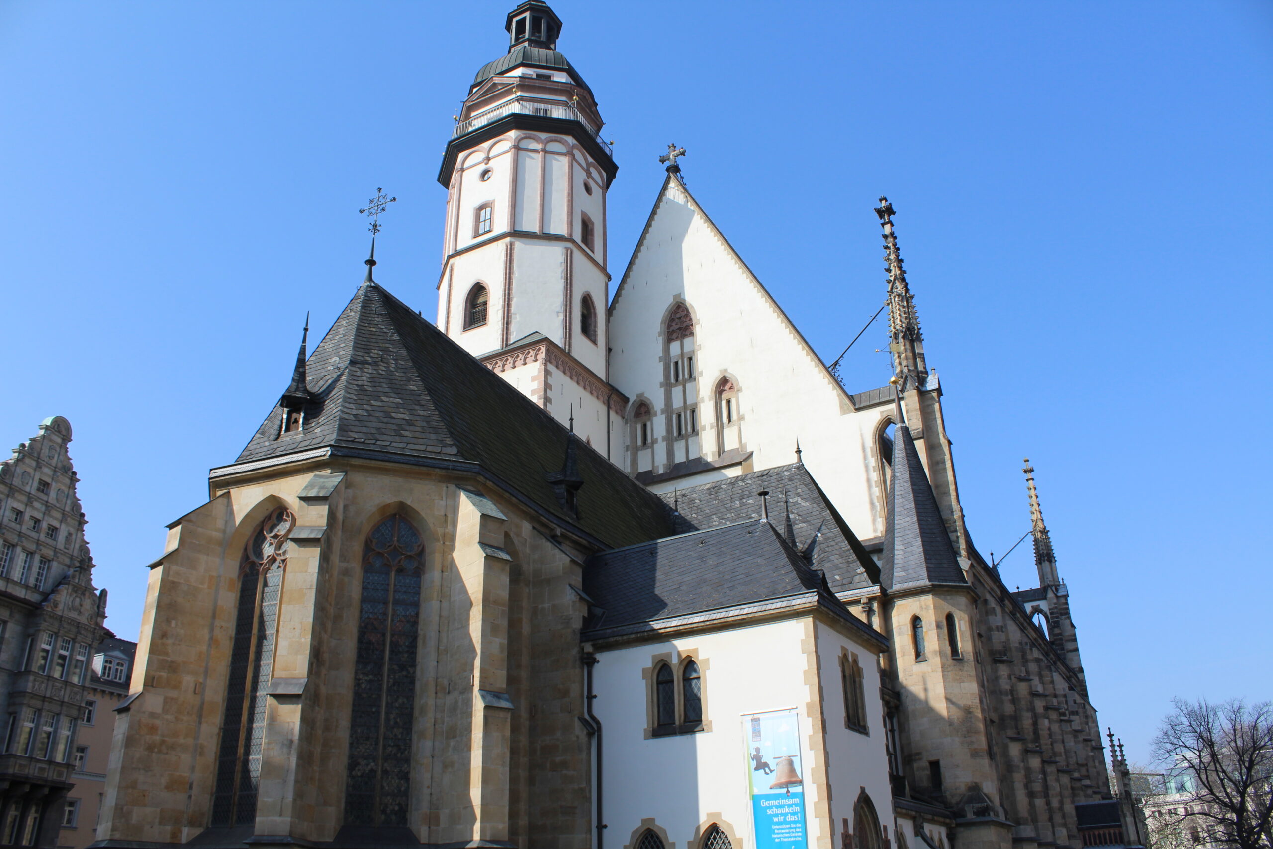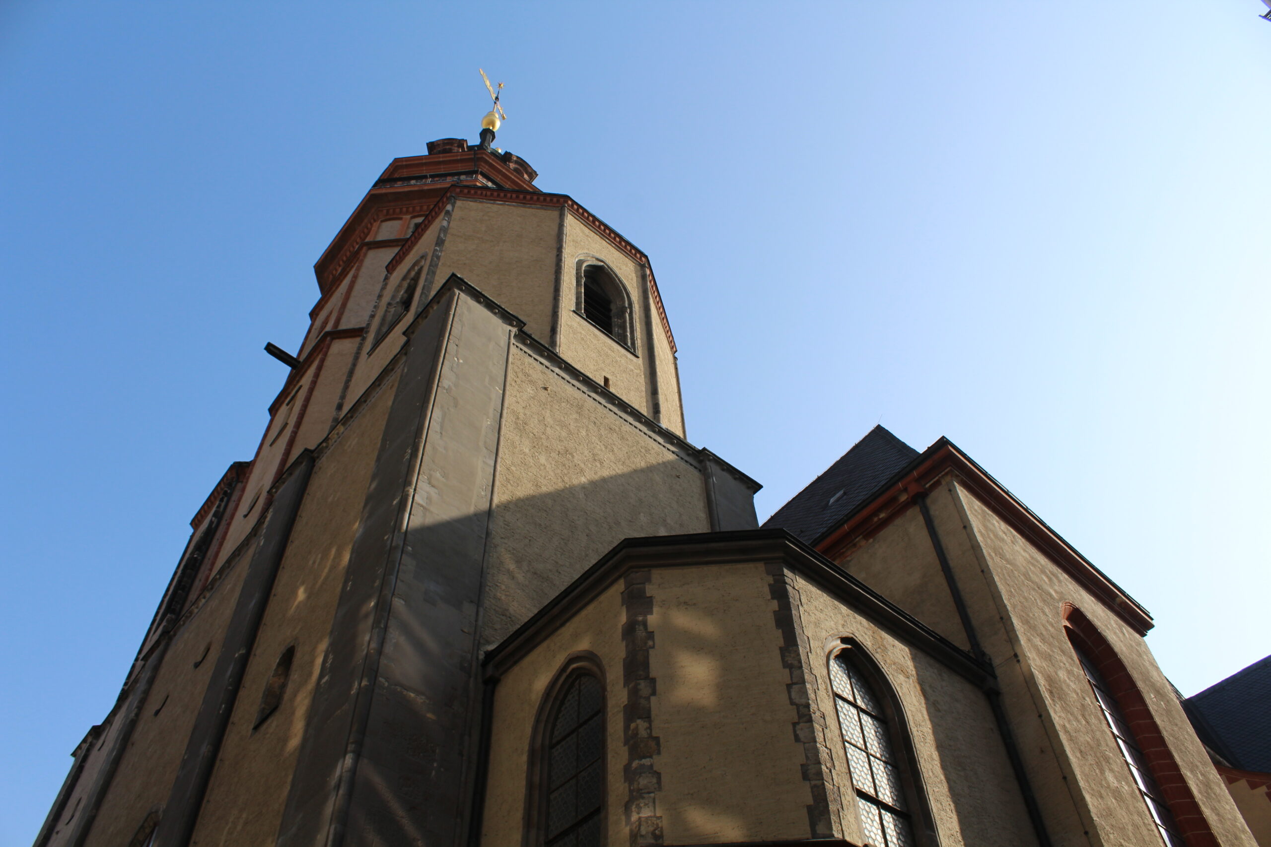 Our hotel was facing the Nikolaikirche so that was easy to catch. Then we walked over to St. Thomas Church via the Leipzig Market. There were several vendors out selling fresh fruit, flowers and baked goods. People were everywhere walking to work and shopping. We also walked by the University of Leipzig and the new town hall. Leipzig was a beautiful city and the weather was great too. We have been very fortunate to have lots of sunshine these past few days.
