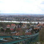 Then we were on our way to take a cable railway up a hill to take pictures of the city. We again took a tram and then hopped off and walked over the Elbe River via the Blaues Wunder (Blue Wonder) bridge. We arrived at the cable railway with minutes to spare and the worker there helped us count out 6 euros to cover the cost of the trip up. Jacob had been wanting to take this train and had seen we’d get great views from the top – unfortunately, we hopped on the wrong train and once we got to the top, it wasn’t where he thought we should be. From there we decided to walk over to the correct station, but that meant walking almost all the way back down and then all the way back up.