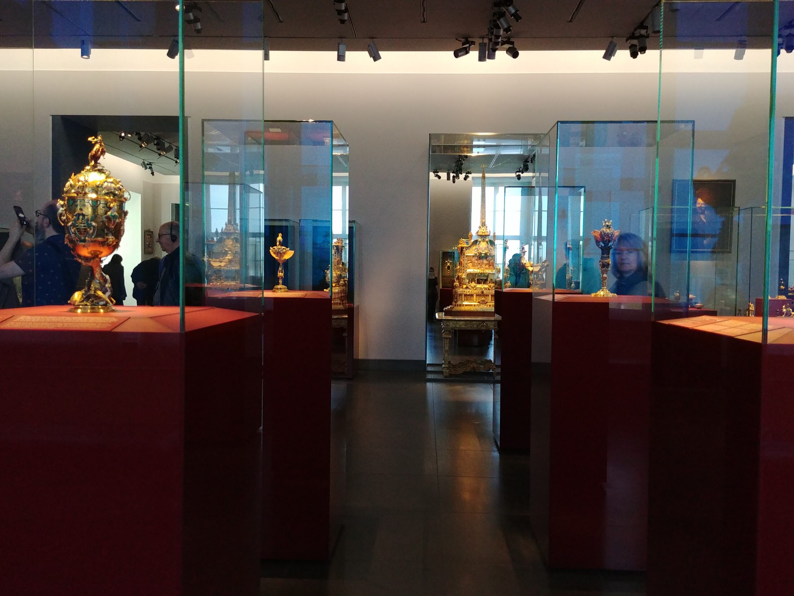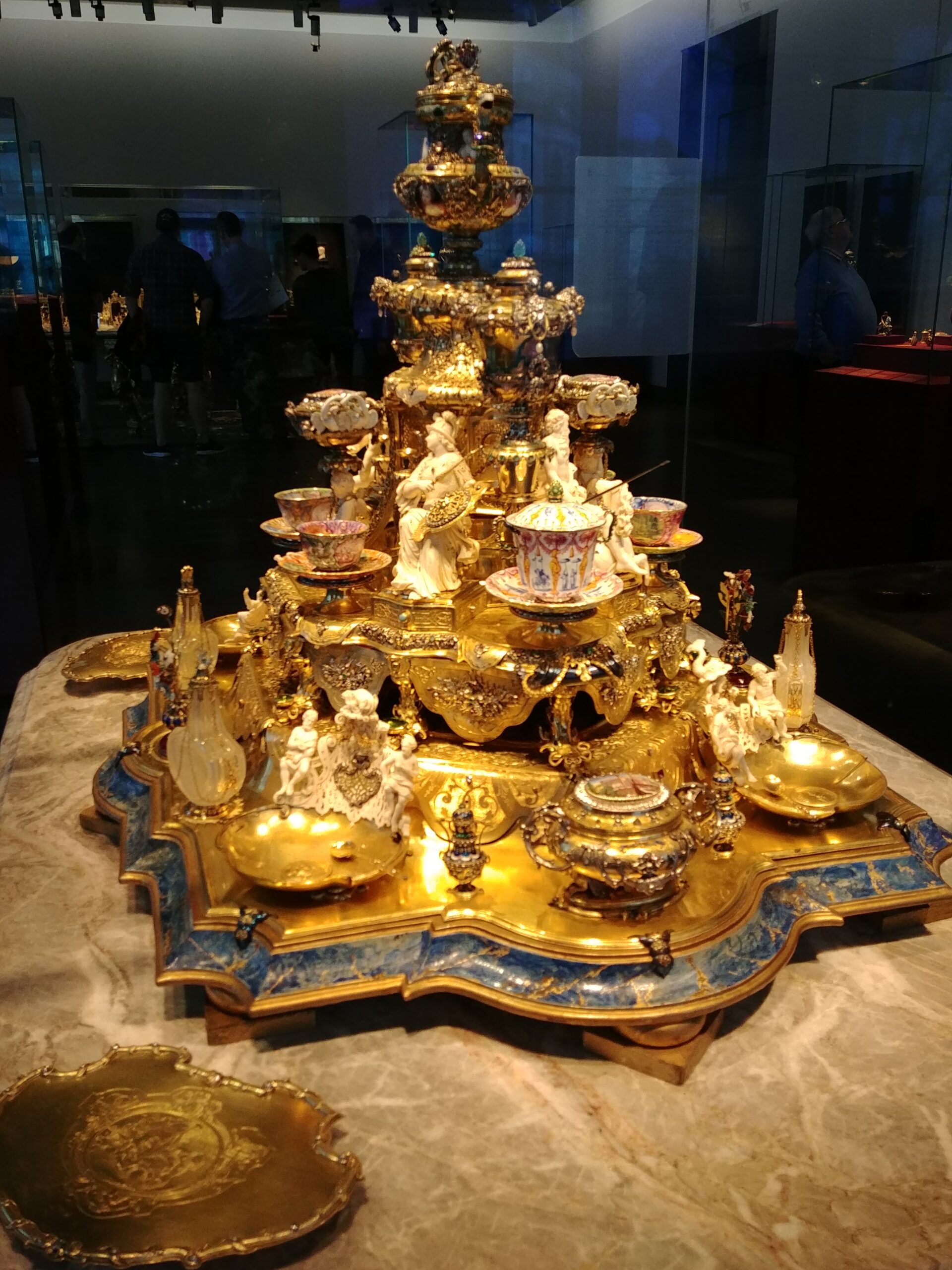 From there we went straight the New Green Vault. This vault contains the unique works of the royal goldsmith and other works of Baroque jewelry. There are almost 1,100 masterpieces. We used our museum cards and walked right in. They allow photos here so I took a few, but they don’t turn out very well due to the glare on the cases. At the New Green Vault we admired the Dresden Green Diamond. This is a 41 carat natural green diamond, you can see it here.
