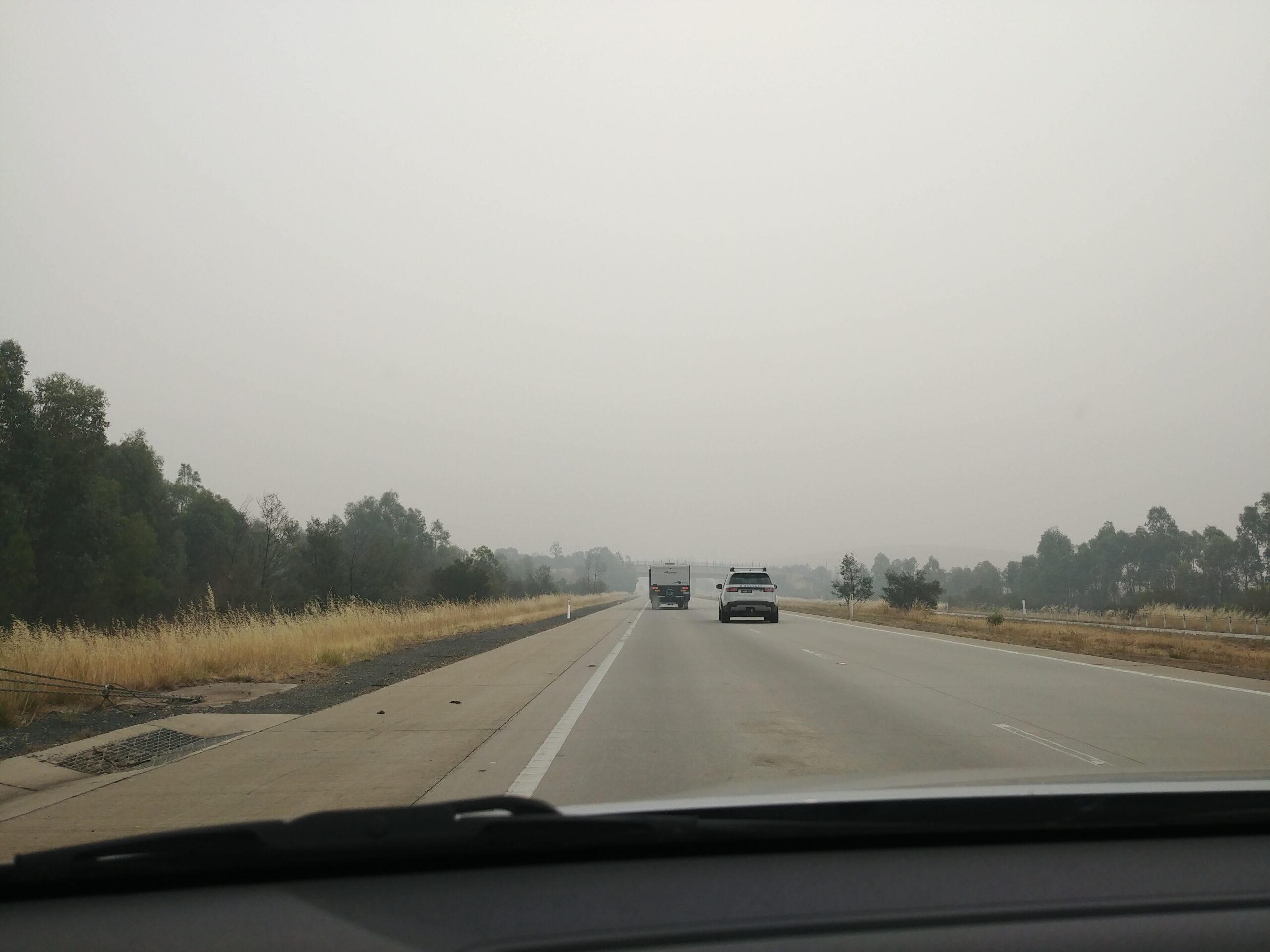 Since the drive from Sydney would take us about 9 hours we got on the road by 8:30 a.m. We stopped at a rest stop along the way, before the really bad smoky stretch to get gas and lunch. Everyone else had this idea too and it was very crowded but we got our food no problem. From there we were trying to drive through the worst of the smoke. We had to drive through some hazardous air quality areas to get to Melbourne.