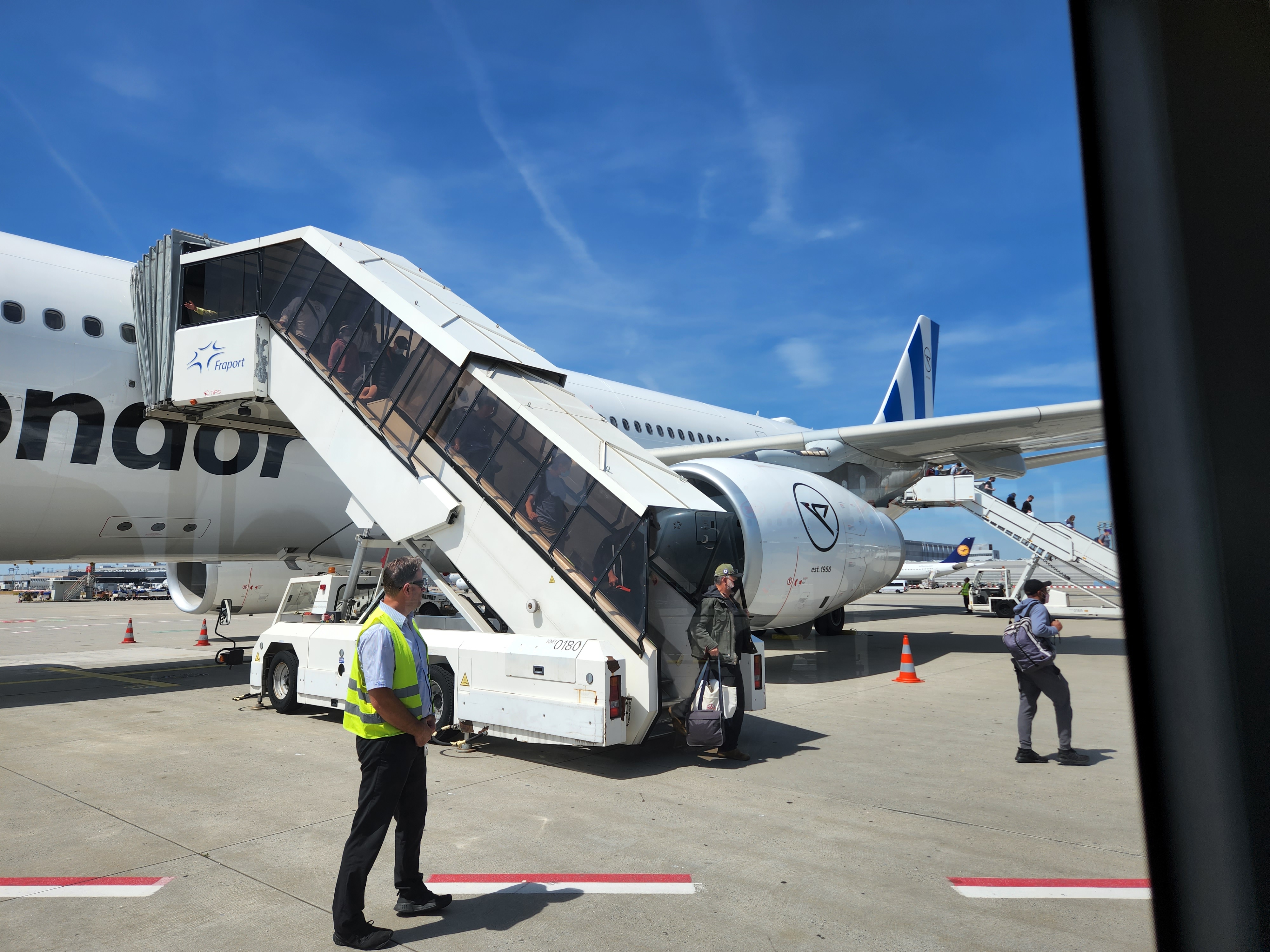 When we landed, we did not arrive at a gate but instead took a flight of stairs off the plane, onto the tarmac and then got on a bus that dropped us off at the terminal. When we stepped out of the plane, we both said, “summer!” It was a nice 88 degrees outside.