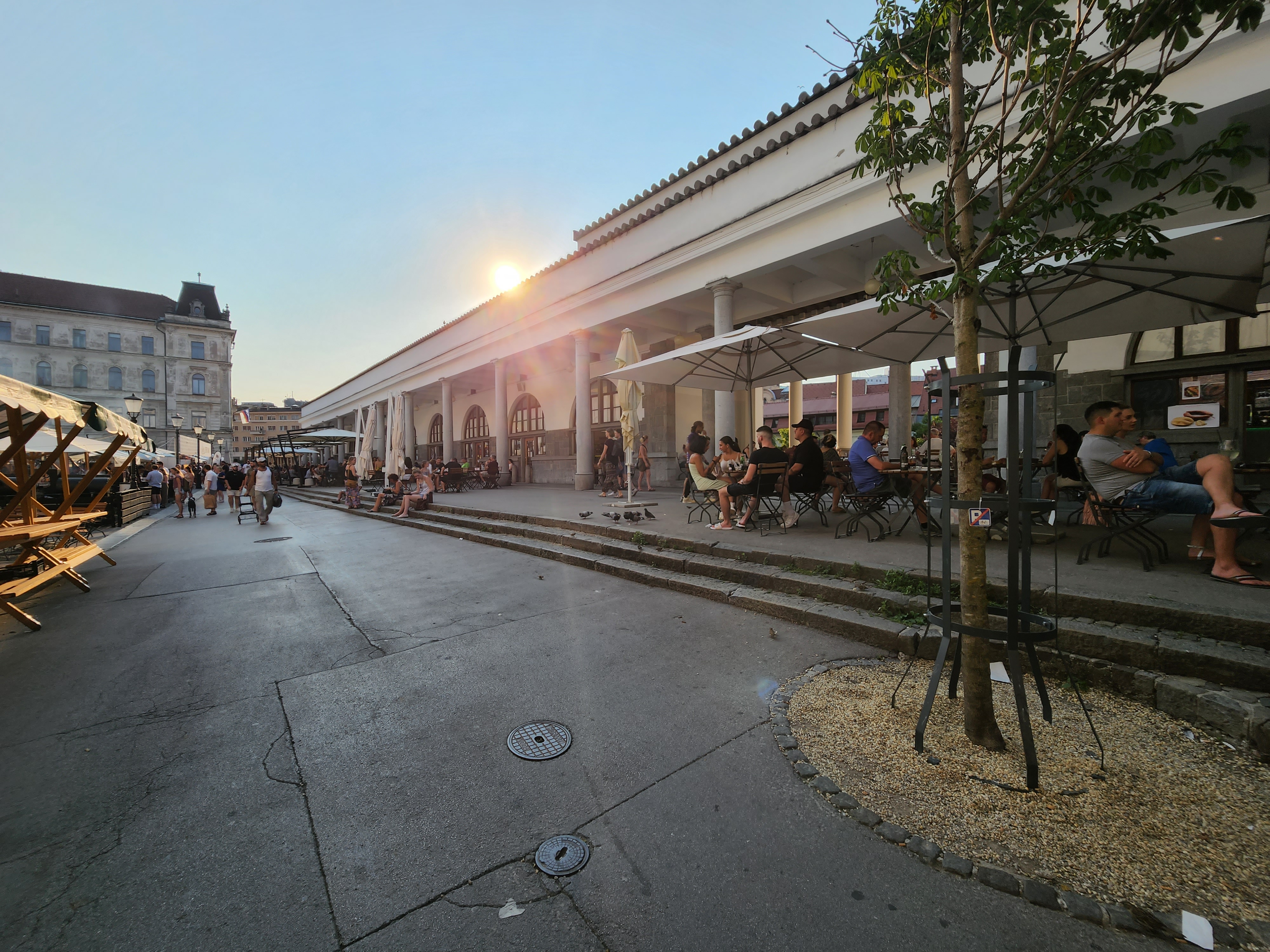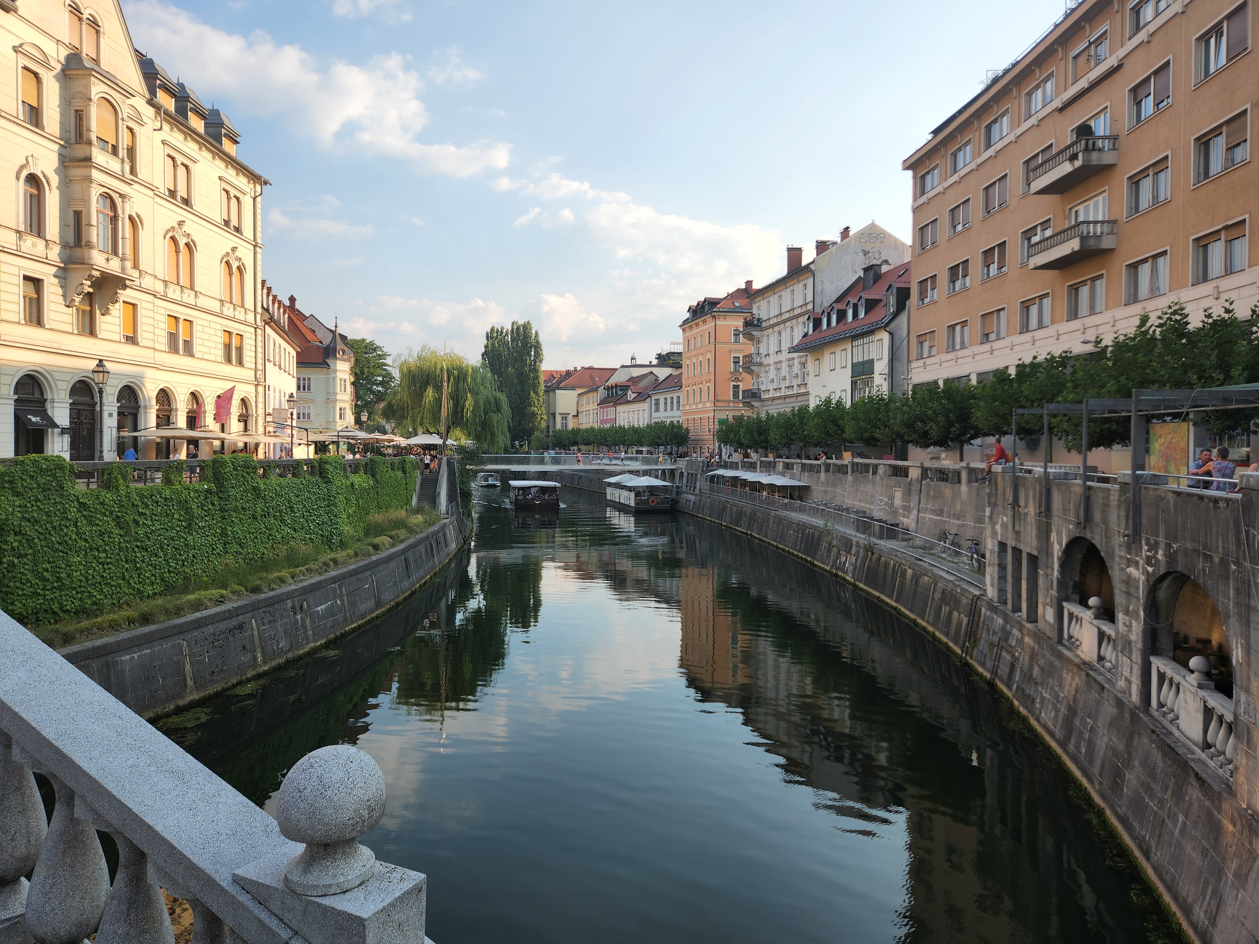 We were about 30 minutes early to check in and I asked if our room was ready, but it was not. We decided to walk around and see the sights for a little bit in the scorching 90+ degree weather. My breath was taken away by the beauty of this place! There was a market selling fresh fruit (which all the bees loved very much). Then there was a stretch where people were selling different products they’d made. Then there was a stretch of food vendors. All of this along the Ljubljanica river.