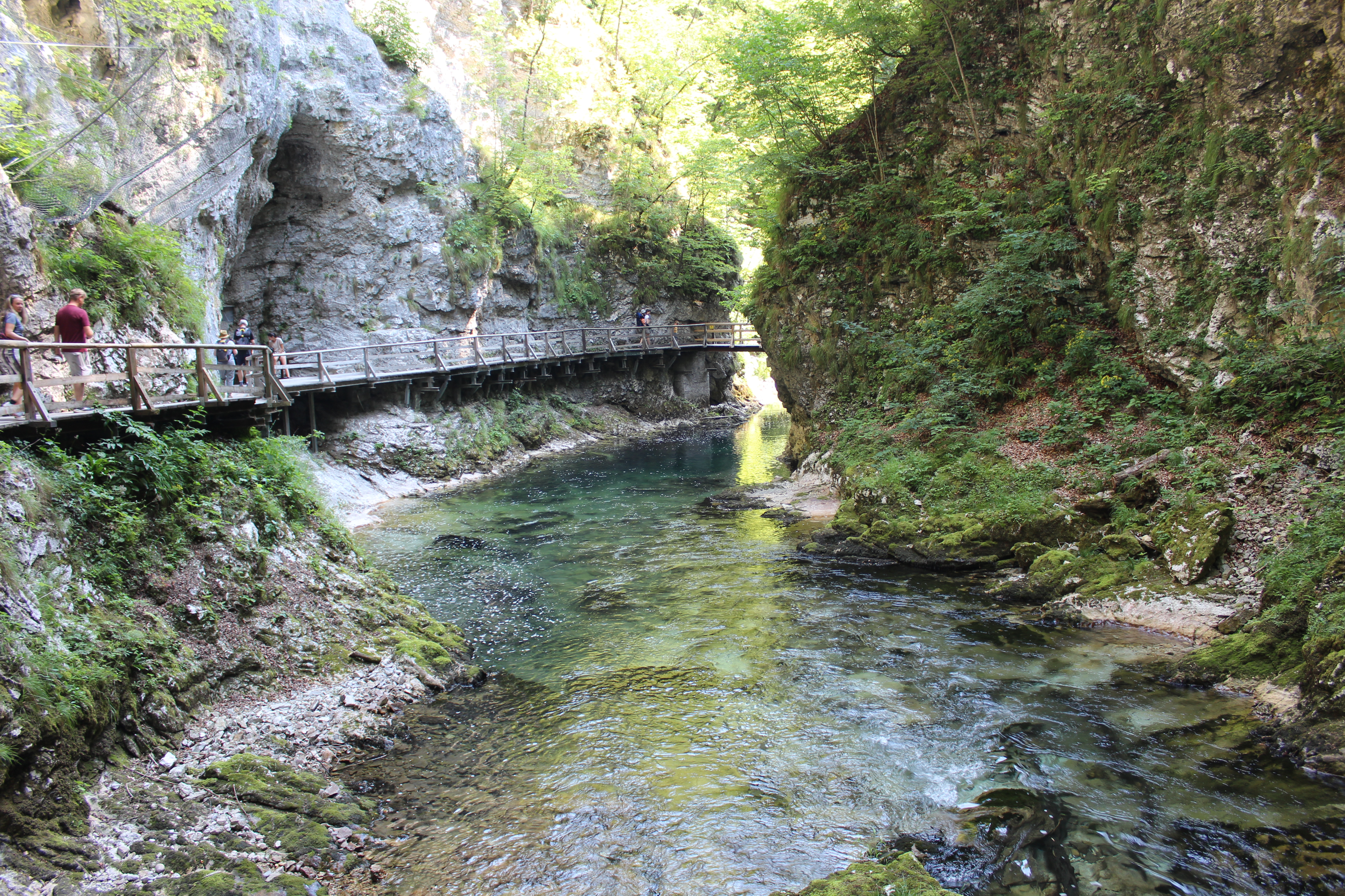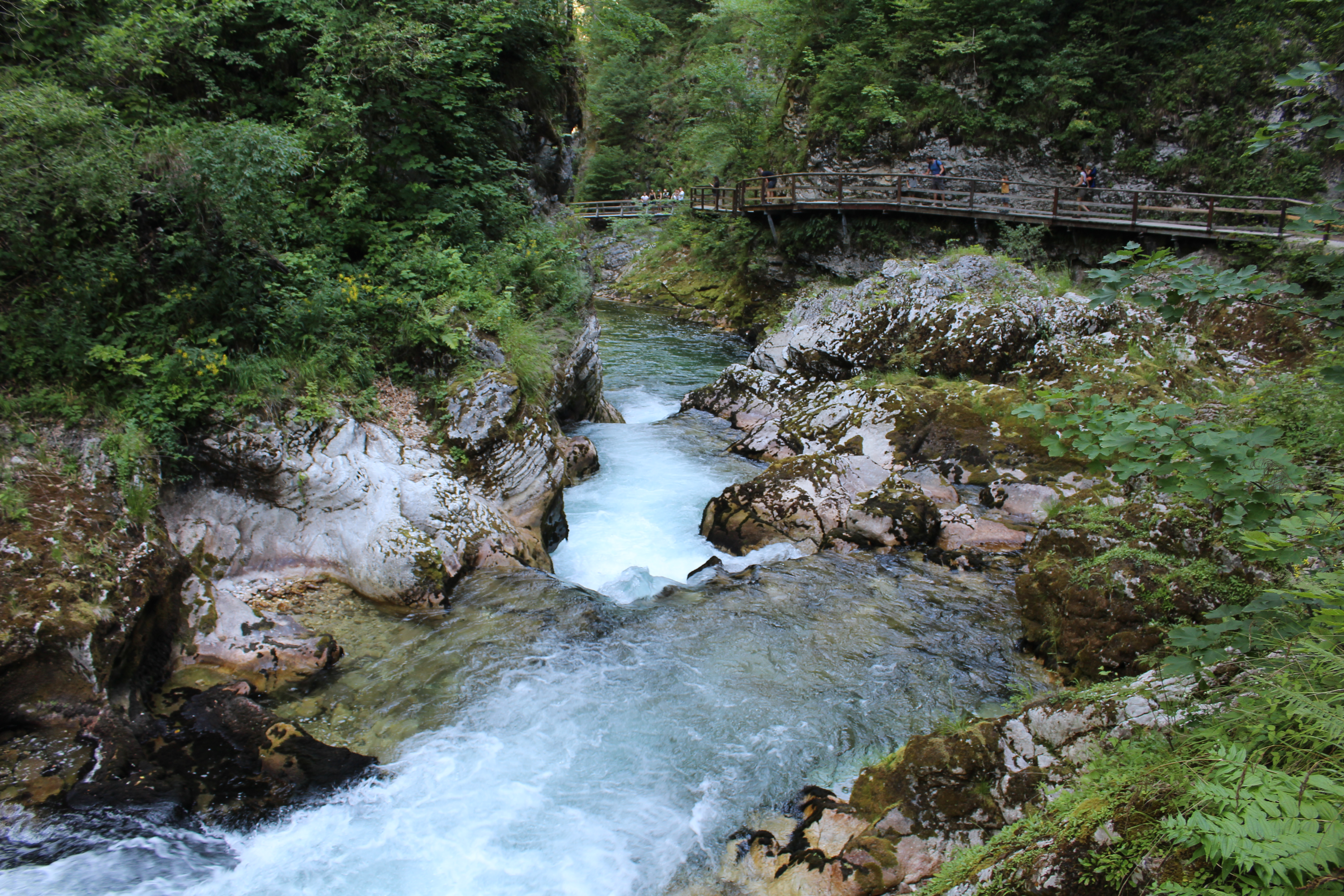 Today we decided to check out the Vintgar Gorge. This is near Bled, only about a 10 minute drive. We parked in a lot for $5 then we had to walk about 20 minutes in the blaring sun to the gorge entrance. One unique thing about the gorge is that it is one way only, so once we got out the other end we’d have to walk all the way back to our car.