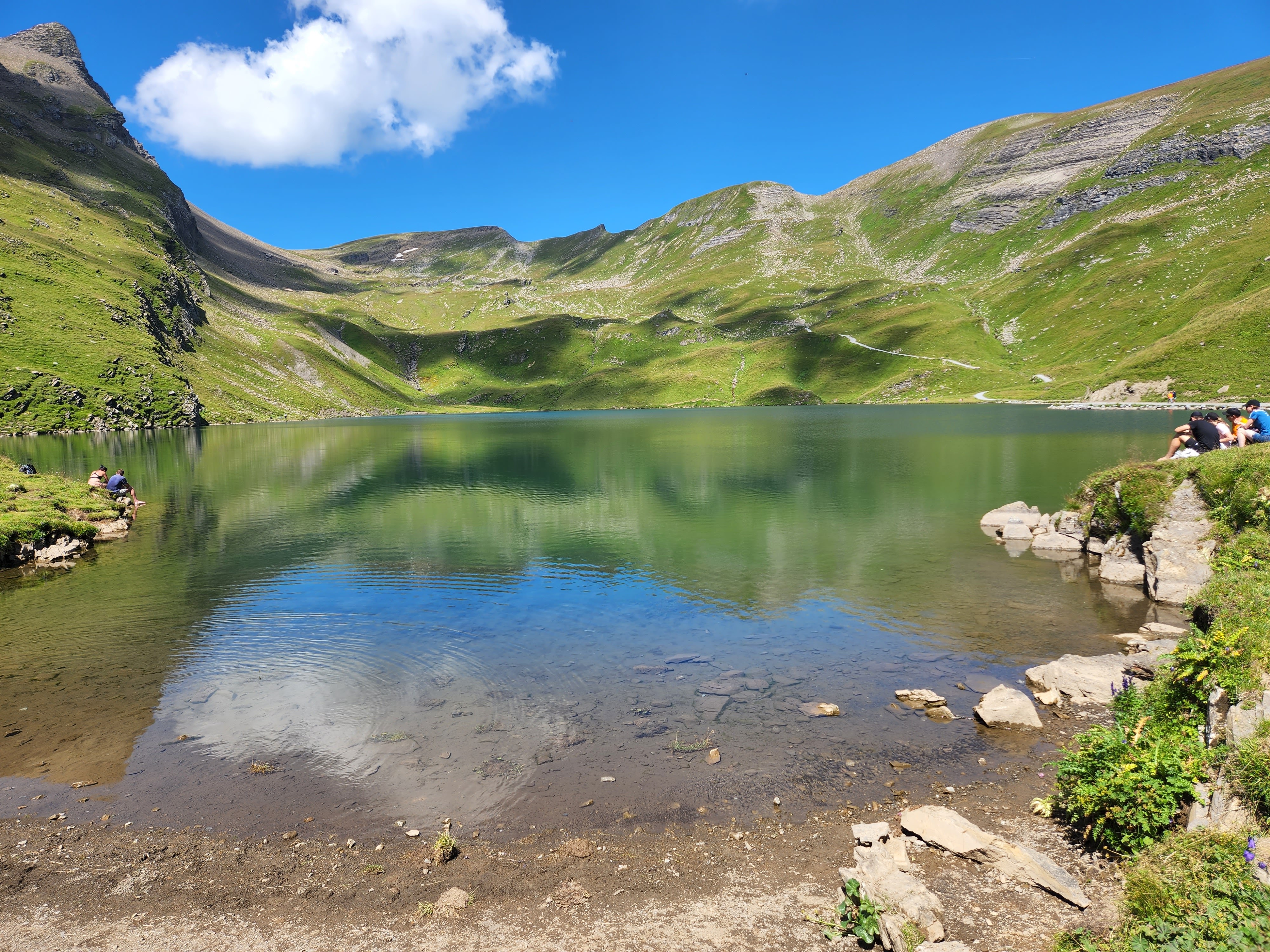 From here we were headed off on a hike to Lake Bachalpsee. This takes about an hour there and an hour back. The trail was mostly flat with only a few inclines. Our legs are quite sore after weeks of hiking so we wanted to take it easy. In total we walked about 7 miles today.